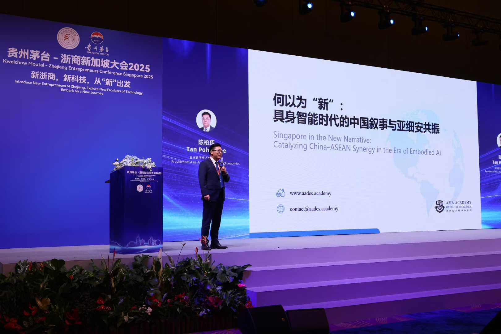 Invited by Mr. Fang Jiangang, President of the Singapore Zhejiang Entrepreneurs Association, Mr. Poh Hwee Tan, President of the Asia Academy of Digital Economics (AADE), delivered a keynote address titled: "What is 'New': Chinese Narrative and ASEAN Resonance in the Era of Embodied AI".